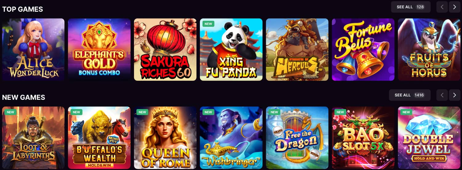 ألعاب السلوت تشكل القسم الأكبر من مكتبة الألعاب، وتتنوع بين الكلاسيكية والجوائز الكبرى وألعاب Megaways.